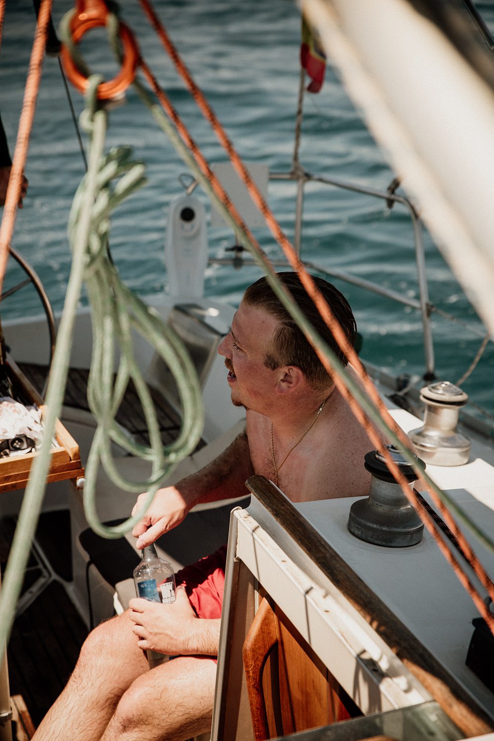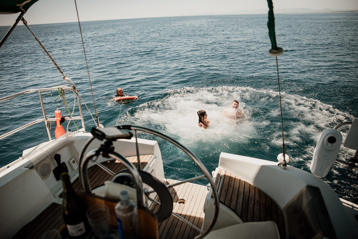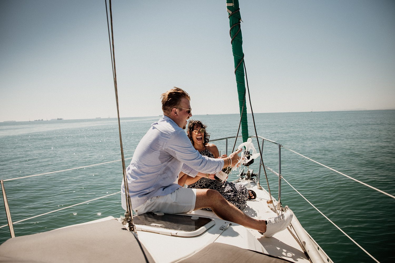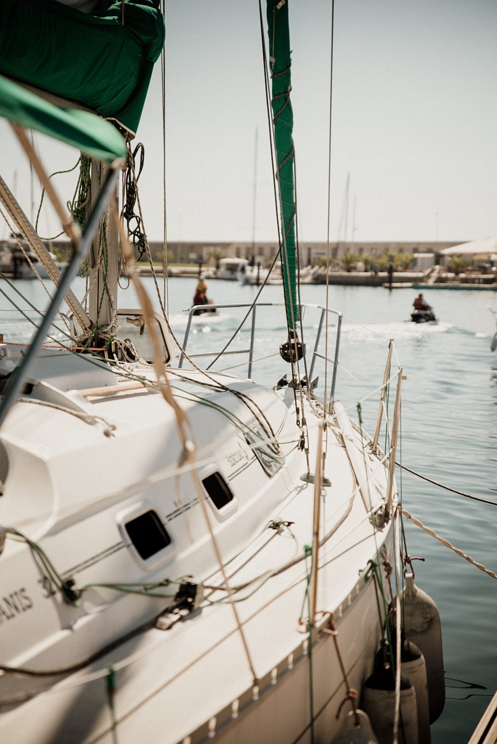 But first things first: Brock wrote us some weeks in advance. They were travelling around Spain and he wanted to ask Nicole to marry him. His initial idea involved a sunset sailing trip around Valencia’s bay, but the captain said the sea might not be as good in the afternoon and suggested doing it in the morning. The light is not the best, it was actually quite hot considering the proposal took place in August, but the idea was still amazing. So off we went. We pretended to be part of the boat staff and we made up the excuse saying that their sailing package included some pictures while sailing. Success! Nicole had no idea what was about to happen. Some pictures before leaving the harbour, and everything seemed to be an innocent day in the sea with nothing else special than that. Don’t get us wrong, sailing the Mediterranean sea is always special, but you know what we mean. Nicole didn’t know that day would be marked for ever.