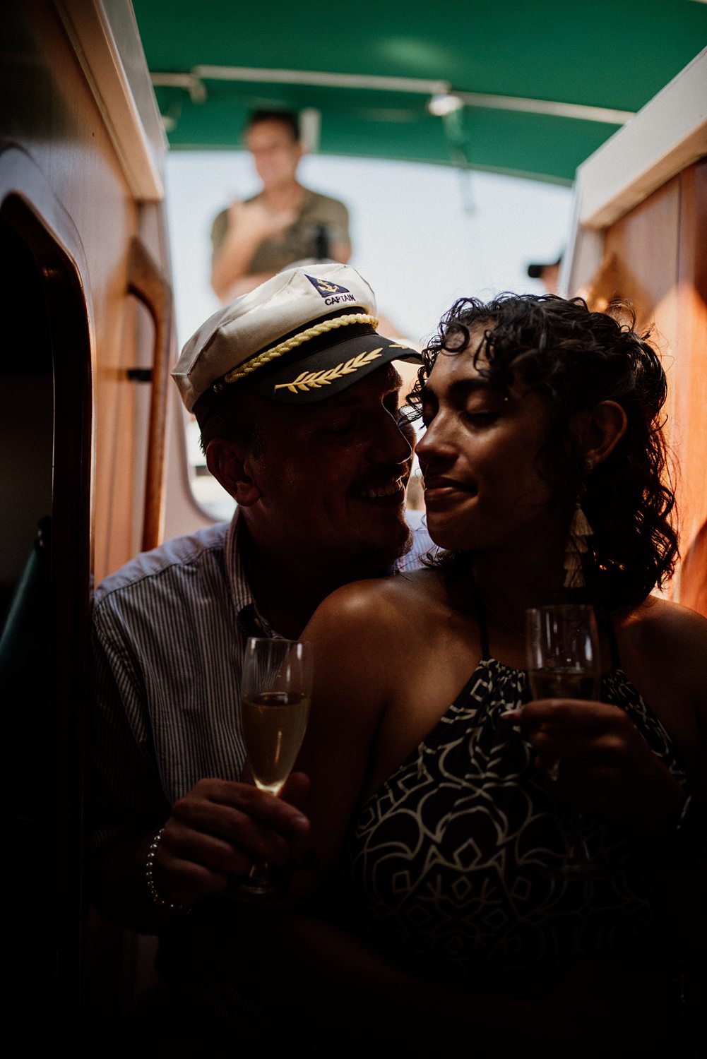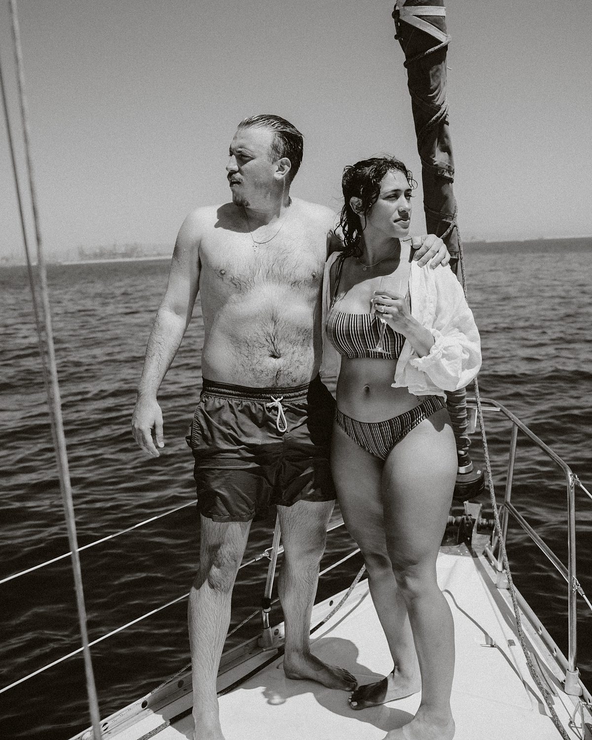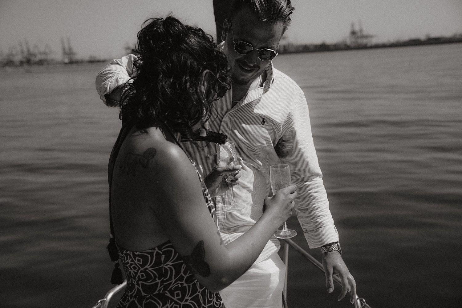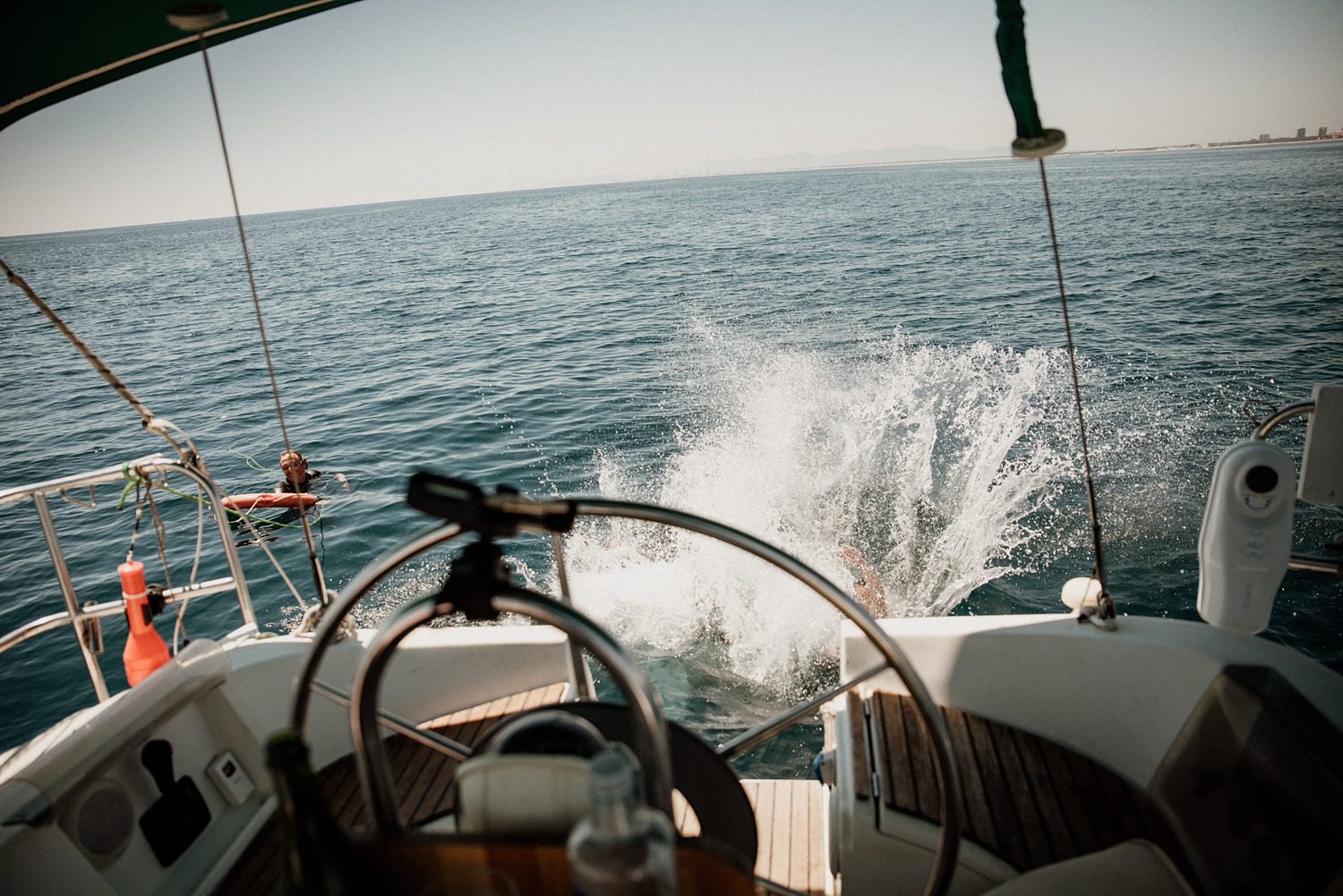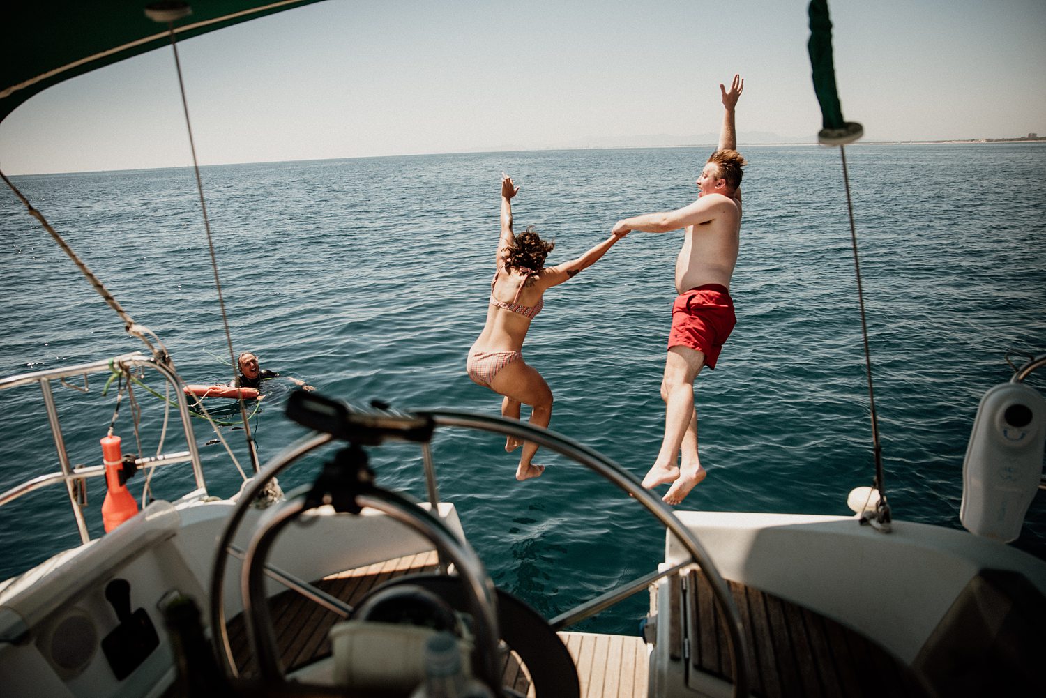 But first things first: Brock wrote us some weeks in advance. They were travelling around Spain and he wanted to ask Nicole to marry him. His initial idea involved a sunset sailing trip around Valencia’s bay, but the captain said the sea might not be as good in the afternoon and suggested doing it in the morning. The light is not the best, it was actually quite hot considering the proposal took place in August, but the idea was still amazing. So off we went. We pretended to be part of the boat staff and we made up the excuse saying that their sailing package included some pictures while sailing. Success! Nicole had no idea what was about to happen. Some pictures before leaving the harbour, and everything seemed to be an innocent day in the sea with nothing else special than that. Don’t get us wrong, sailing the Mediterranean sea is always special, but you know what we mean. Nicole didn’t know that day would be marked for ever.