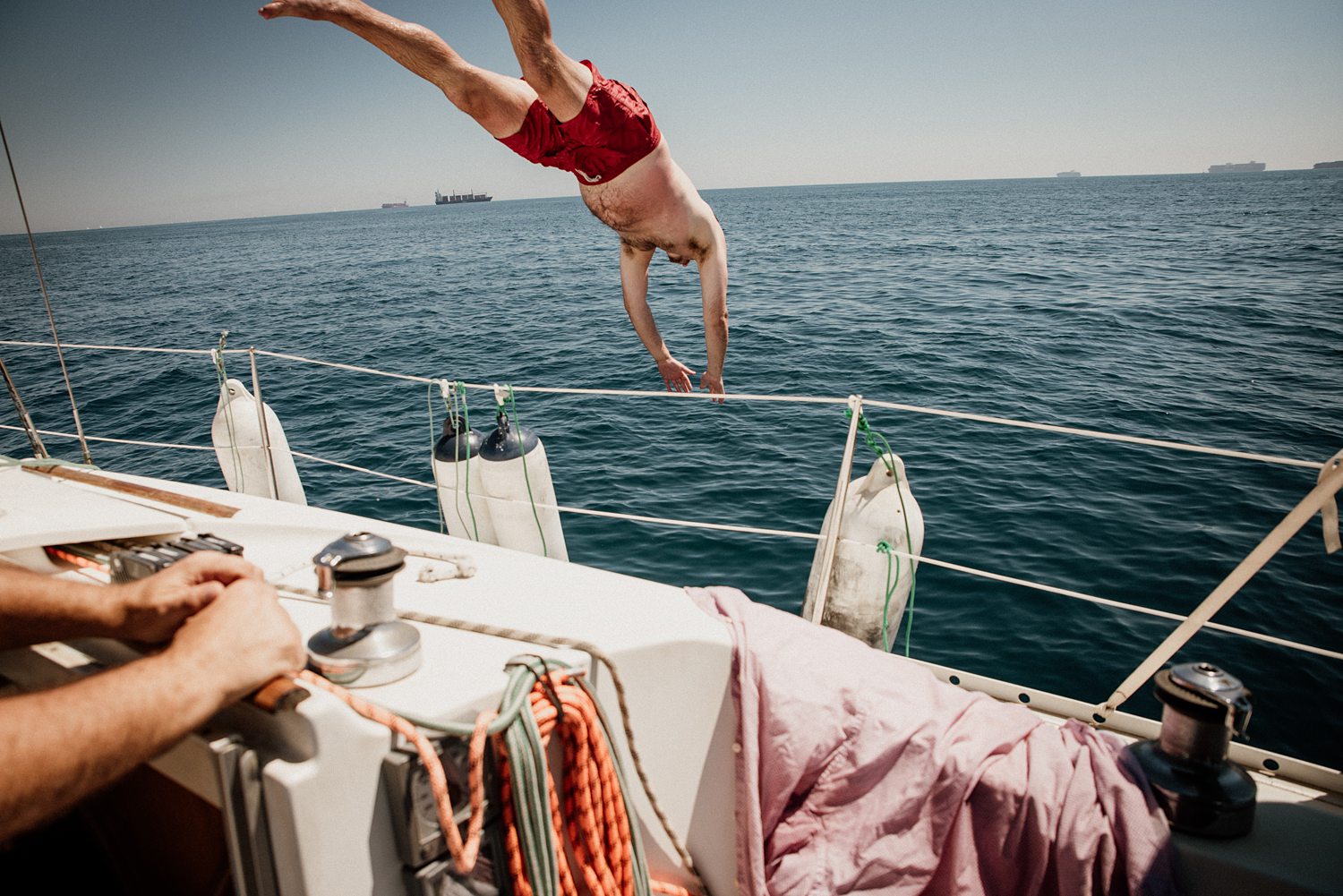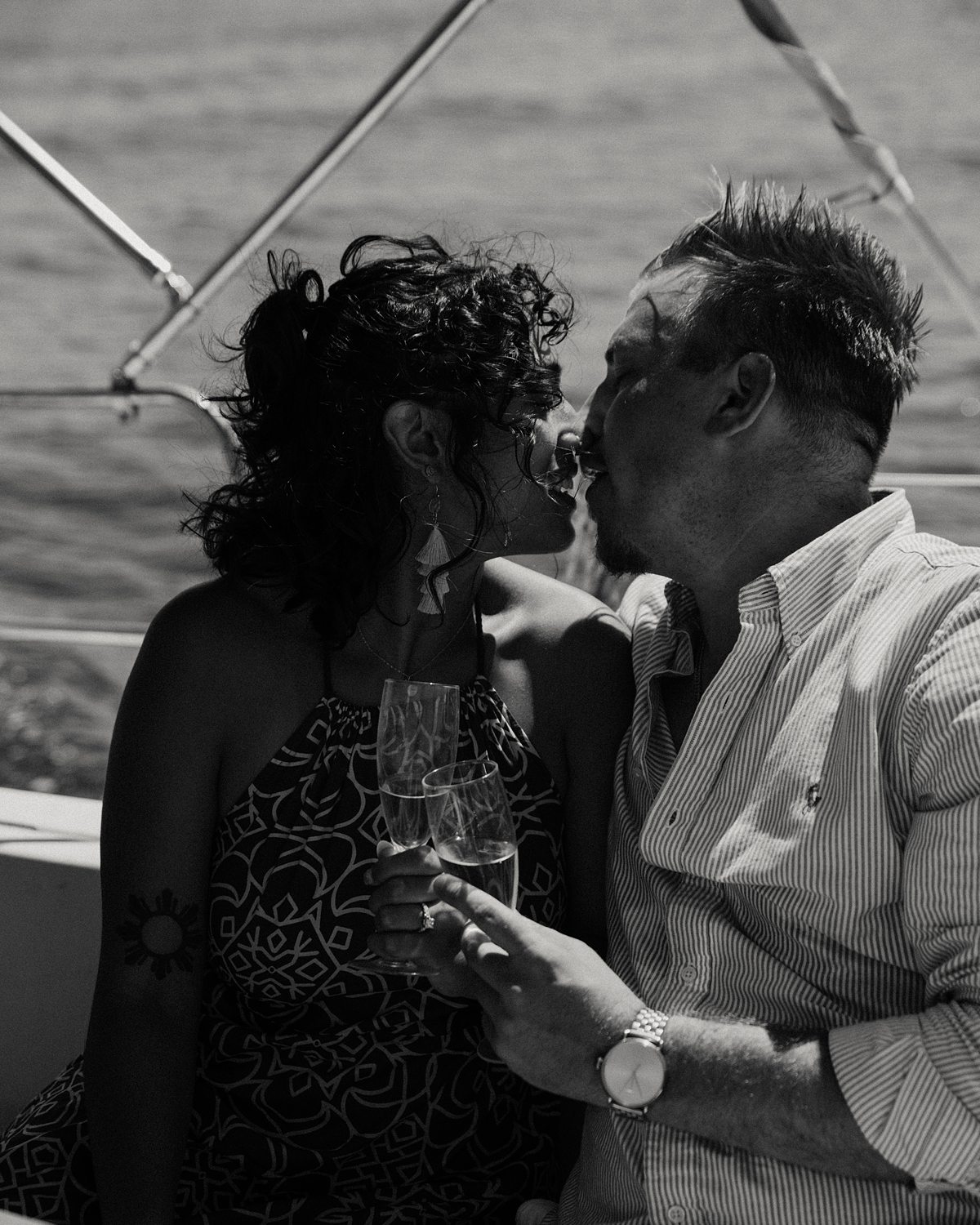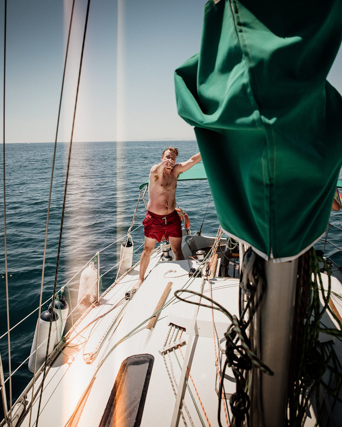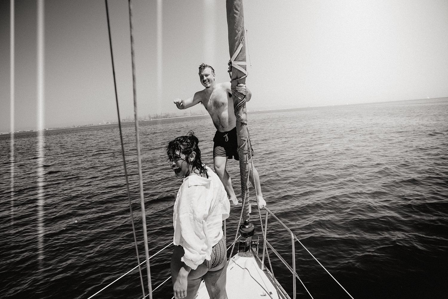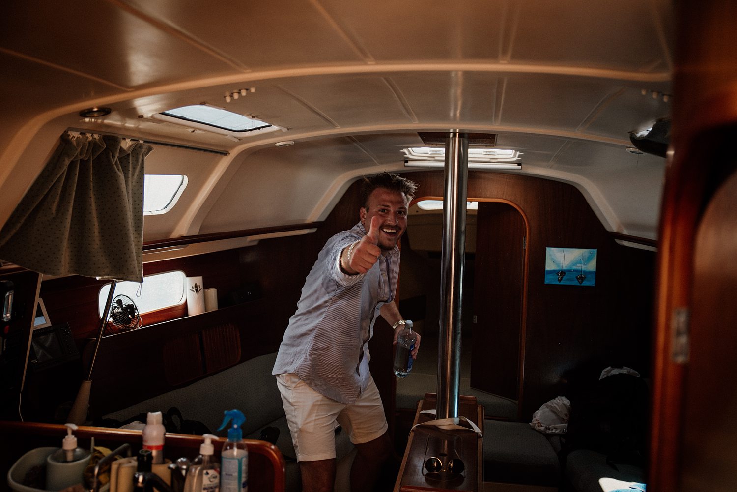 But first things first: Brock wrote us some weeks in advance. They were travelling around Spain and he wanted to ask Nicole to marry him. His initial idea involved a sunset sailing trip around Valencia’s bay, but the captain said the sea might not be as good in the afternoon and suggested doing it in the morning. The light is not the best, it was actually quite hot considering the proposal took place in August, but the idea was still amazing. So off we went. We pretended to be part of the boat staff and we made up the excuse saying that their sailing package included some pictures while sailing. Success! Nicole had no idea what was about to happen. Some pictures before leaving the harbour, and everything seemed to be an innocent day in the sea with nothing else special than that. Don’t get us wrong, sailing the Mediterranean sea is always special, but you know what we mean. Nicole didn’t know that day would be marked for ever.