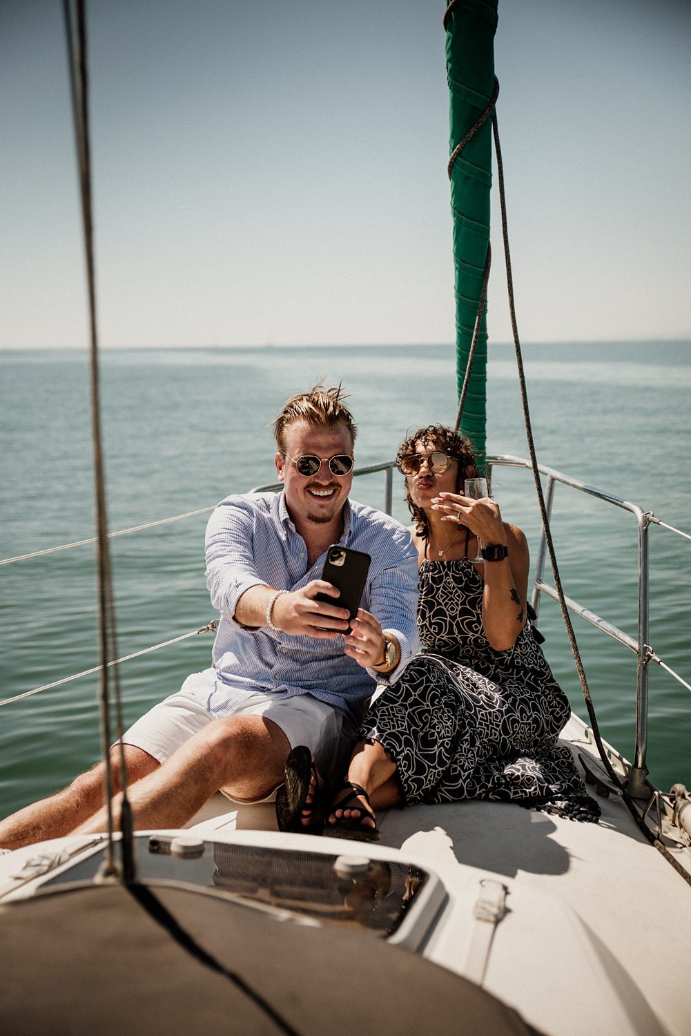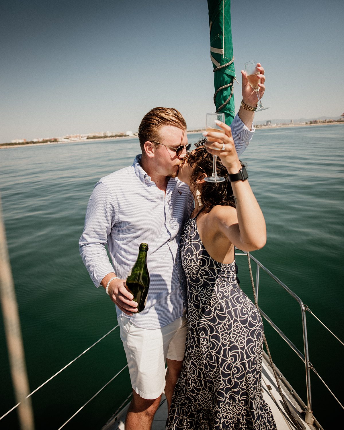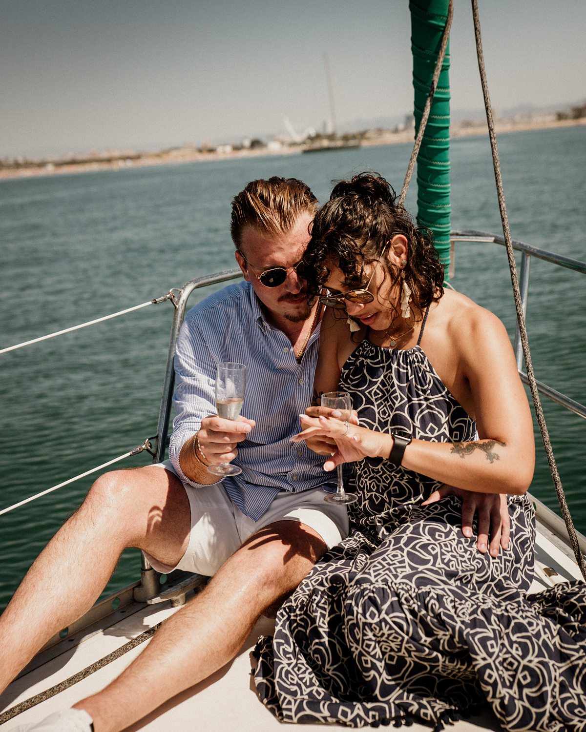 Then champagne. Lots of champagne. Four or five bottles actually hahaha. But also some snacks, music, pictures, joy and enjoying the Mediterranean sea. Which is the best thing you can do after a successful proposal in Valencia’s sea. Everything was smooth as sailing the sea… (Please don’t judge us, that pun was screaming to be written). Brock and Nicole are getting married!