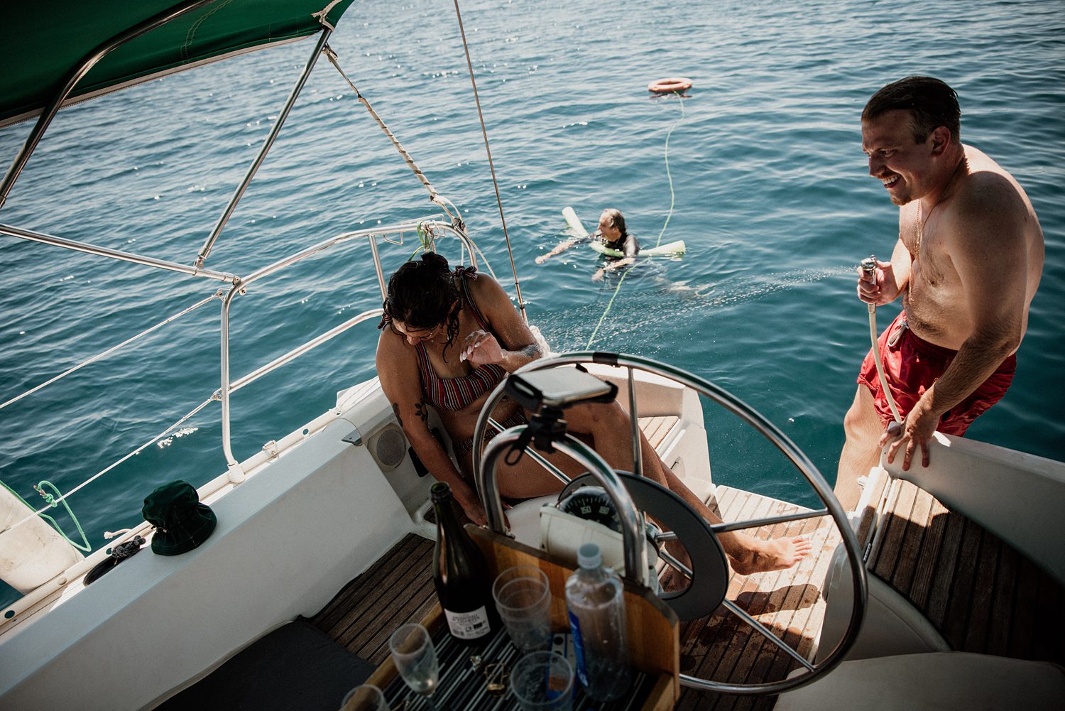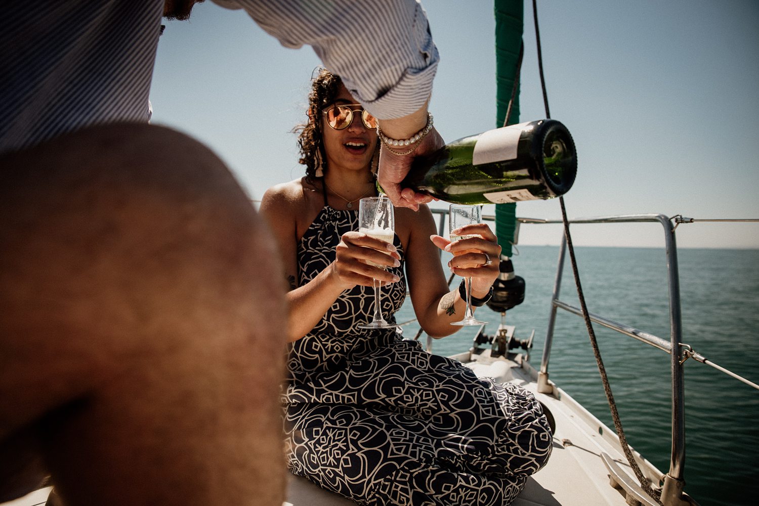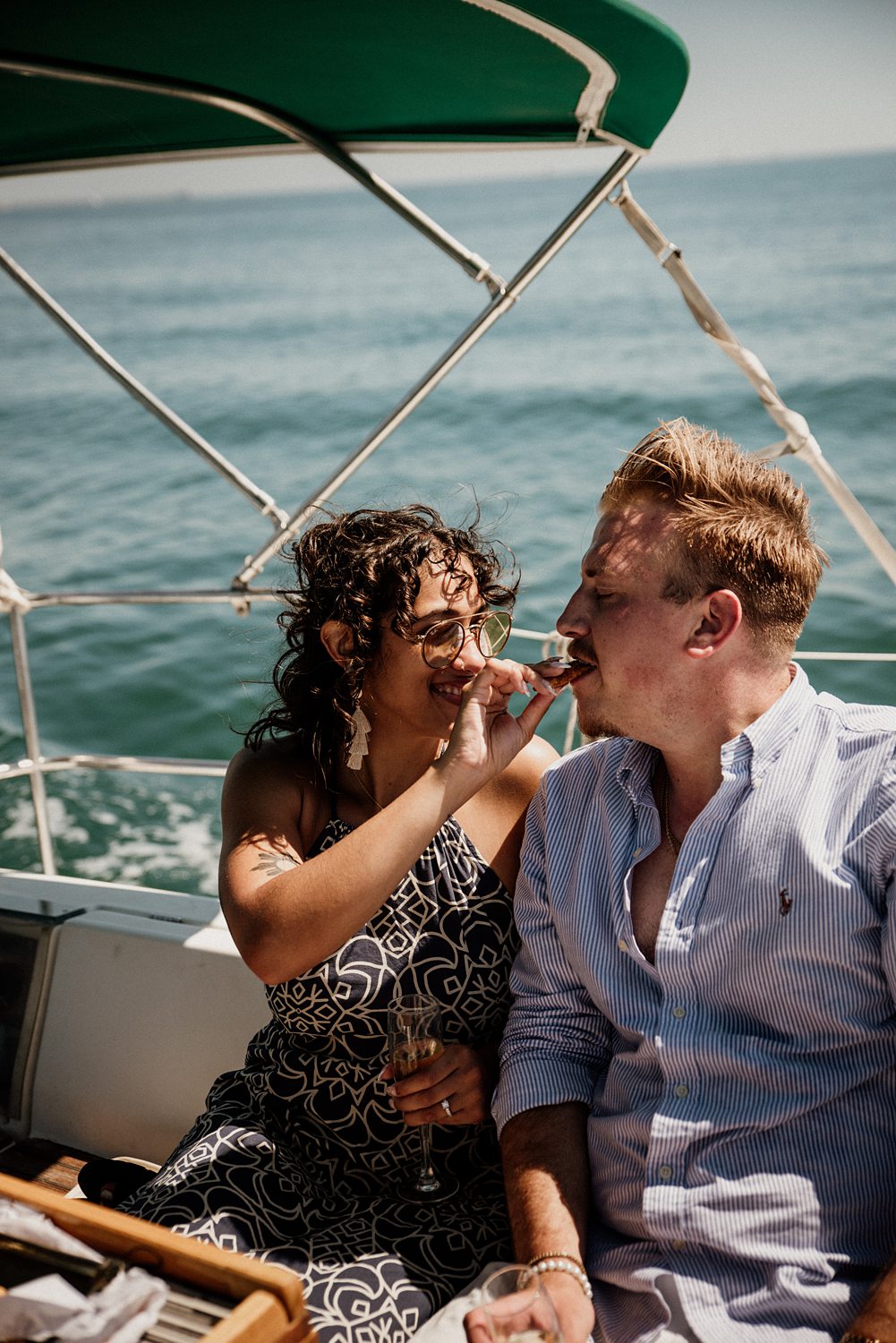 Then champagne. Lots of champagne. Four or five bottles actually hahaha. But also some snacks, music, pictures, joy and enjoying the Mediterranean sea. Which is the best thing you can do after a successful proposal in Valencia’s sea. Everything was smooth as sailing the sea… (Please don’t judge us, that pun was screaming to be written). Brock and Nicole are getting married!